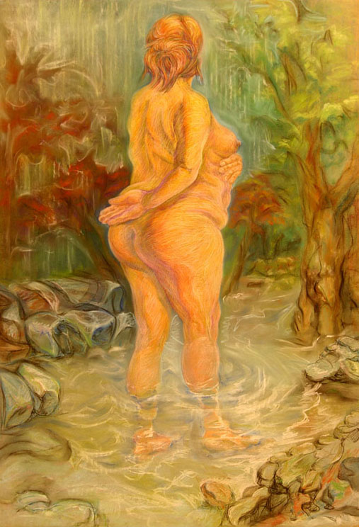 Title: Nude Woman in Trees (Pastel Drawing)